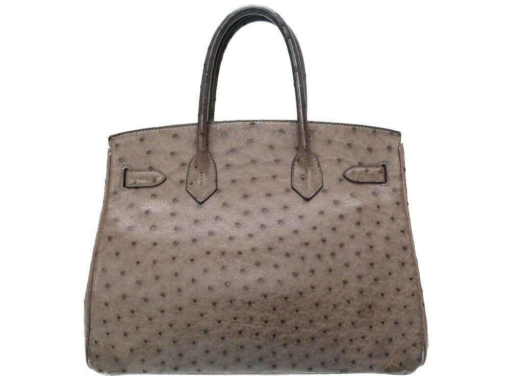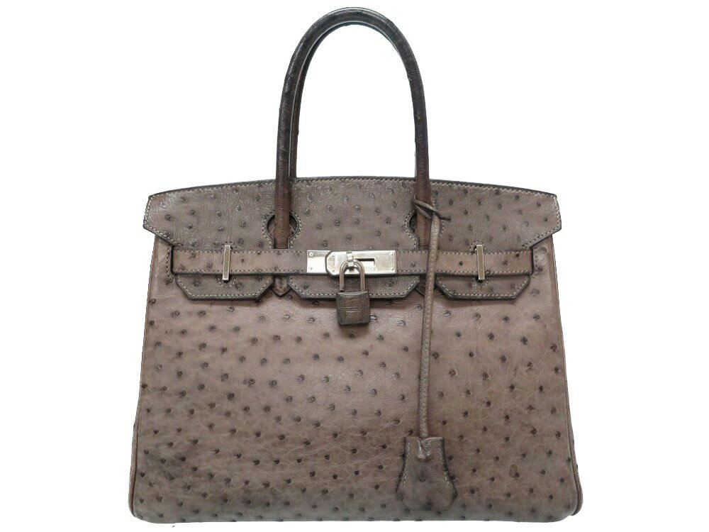 エルメス バーキン30 オーストリッチ ムース シルバー金具 □L刻印 ハンドバッグ バッグ 0067 【中古】 HERMES
