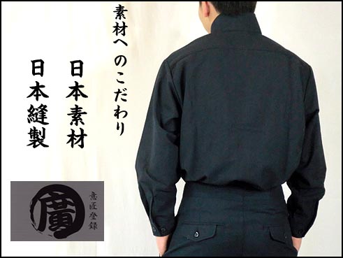 上下セットはこちら ネーム刺繍はこちら【日本製 高級鳶装束 少量生産】 廣瀬オリジナルブランドオープンシャツ サージ ネイビー 名だたる老舗鳶ブランド種田・千曲屋・豊多屋とある中で 同じ東京下町で生まれたオリジナルブランド「廣瀬」。